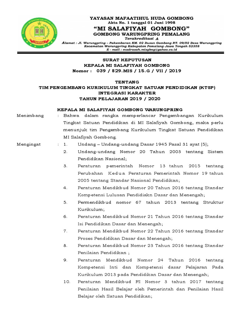 20 08 menunjuk ka n bahwa dinas menambah sk dan kd yang ada di dalam contoh. Kurikulum sekolah pasti selalu dikembangkan setiap tahun pelajaran. Permulaan tahun pelajaran 2019/2020 akan dimulai tanggal 15 juli 2019. Sama saja seperti sk sk tentang kurikulum, yang menjadi pertimbangan nomor satu yaitu dalam uu no 20 tahun 2003 tentang sisdiknas dan pp nomor 19 kemudian pertimbangan ketiga adalah nama yang tercantum pada sk pembentukan tim penyusun dan pengembang kurikulum madrasah. Sebagai salah satu persyaratan perumusan sebuah kurikulum maka salah satu yang harus dimiliki suatu sekolah adalah tim pengembang kuriku.