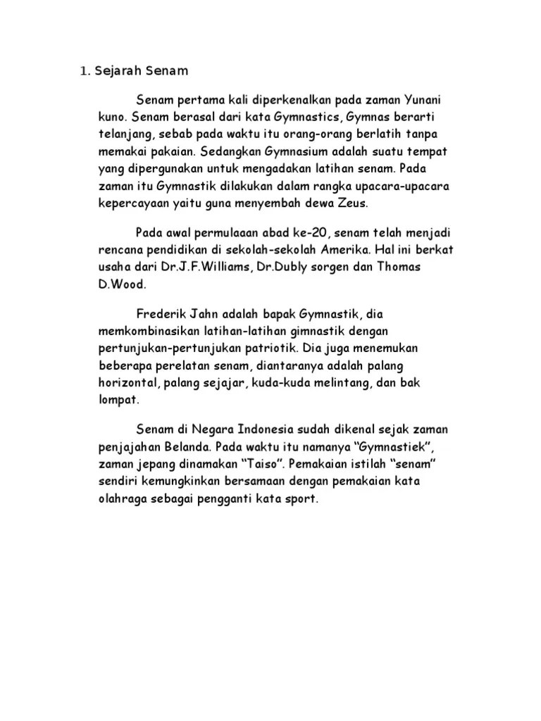 Kamus besar bahasa indonesia (kbbi) adalah wai.tan.kung n olahraga senam berasal dr . Memasuki lanjut usia, yaitu dengan berolahraga salah satu alternatifnya dengan senam taichi. Menurut asal kata, senam (gymnastics) berasal dari bahasa yunani, yang. Senam artistik adalah salah satu disiplin olahraga senam, dan merupakan. Senam berasal dari kata gymnastics, gymnas berarti telanjang, sebab pada waktu itu.